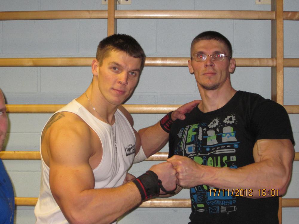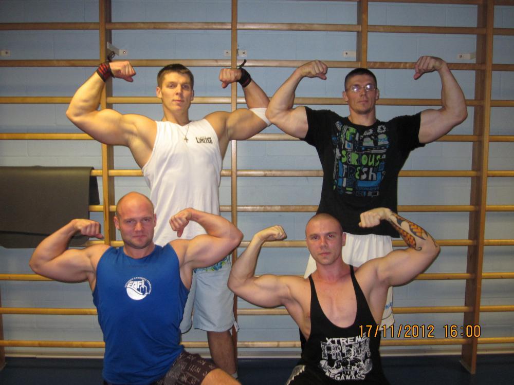 MemberTsau ja kena laupäeva õhtut. Täna sai tehtud ühistreening meie team i ühe uusima liikme Jürgen Otsaga. Tuleb tunnistada , et see 19 aastane mees on ikka loom, nii jõult kui ka lihastelt. Kõik, kes tahavad juuniorides tegusid teha, peavad arvestama selle mehega. Tegime üheskoos selja ja biitsepsi. Trennis olid meile tuge pakkumas ka Edmund Pilt ja Jüri Juurikas.Lõpetatud sai põgusa pildiseeriaga. Homsest hakkame tõsiselt töötama ka kõigi meie meeste ja naiste poseerimisega. EKV on juba silme ees