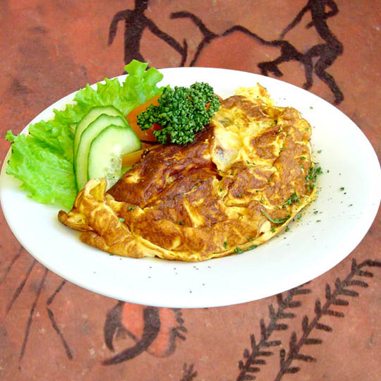Keeda spagetid pehmeks. Klopi lahti muna, lisa piim ja tükeldatud paprikad, maitsesta soola, paprika ja maitserohelisega. Lisa spagetid. Aseta pannile küpsetuspaber, vala sellele munasegu ja puista üle juustuga. Lase omletil nõrgal kuumusel kaane all 5-10 minutit hüübida.