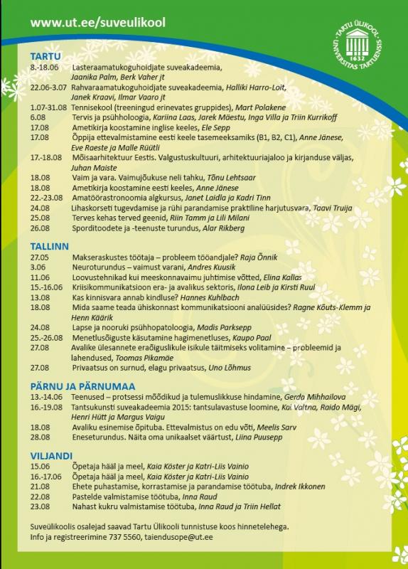 Vaata lähemalt: http://www.ut.ee/suveulikool
