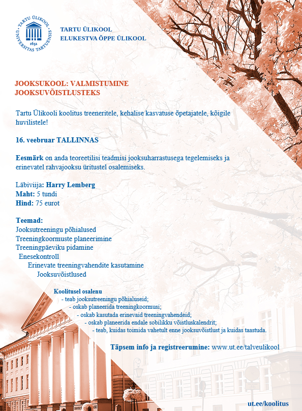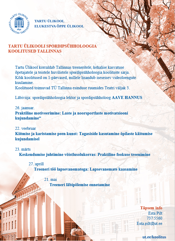 29. augustil toimub Tallinnas Tartu Ülikooli koolitus: