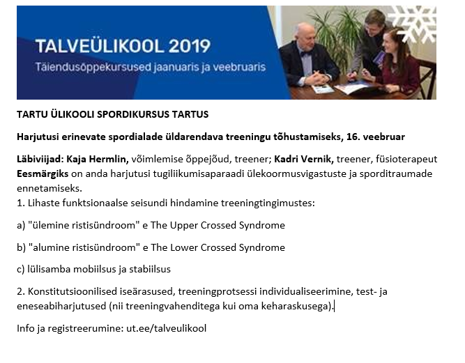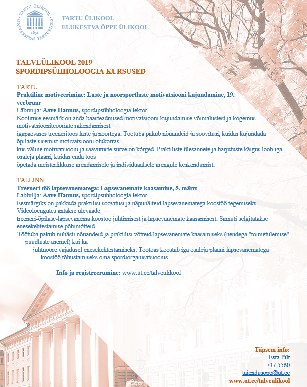 MemberTartu Ülikool teavitab algavatest kursustest treeneritele, õpetajatele ja spordiga tegelejatele ning nende vanematele.