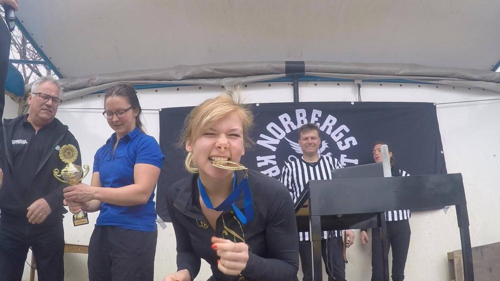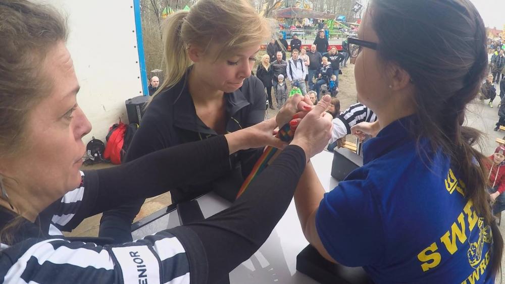 25. aprillil käisime käesurujatega Rootsis Norbergis võistlemas. Toimusid supermatšid ehk igaüks sai endale ühe vastase, kellega suruti 5x mõlema käega – kes kõige rohkem maha surus, võitis. Sain endale kõva vastase, kes on varem Euroopa Meistrivõistlustel saanud IX koha, Rootsi Golden Arm võistlustel II koha ja Rootsi meistrivõistlustel pro klassis II koha. Naised saunas rääkisid, et ta olevat Rootsi neljas käsi. Ühesõnaga päris kõva vastane tulemuste järgi. Matšid olid mul temaga alguses väga tasavägised, kogu aeg oli tunne, et nüüd surun ta käe maha ning ei ole ta nii tugev midagi. Miks ma siiski kaotasin? Ta oli minust päris palju lühem ja setõttu ei osanud ma õiget stardipositsiooni võtta. Kui ma oleks õige asendiga alustanud, oleksin ma ta 10 korda järjest maha surunud ka. Juba stardi alguses ei saanud ma oma rannet sirgeks ja nii mu võidud läksidki. Võistluste lõpus kutsusid kohtunikud mu enda juurde, rääkisid, milline mu stardiasend oleks võinud olla ning lisasid, et ma olen päris tugev