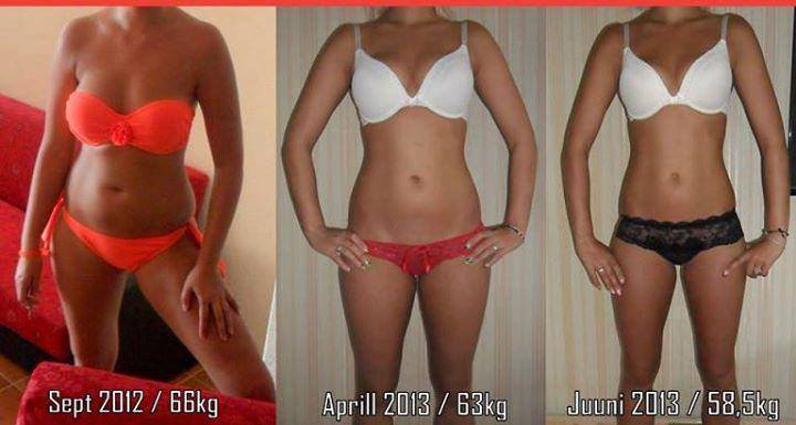 2013 aprillis tellisin elukaaslasega toitumiskava Marek Kalmuselt. Ja natuke rohkem kui kuu ajaga oli kaaluks 58.5. Siis ma jälgisin ka seda kava nii et kuu aega ei söönud mitte midagi muud. 100% kava järgi.