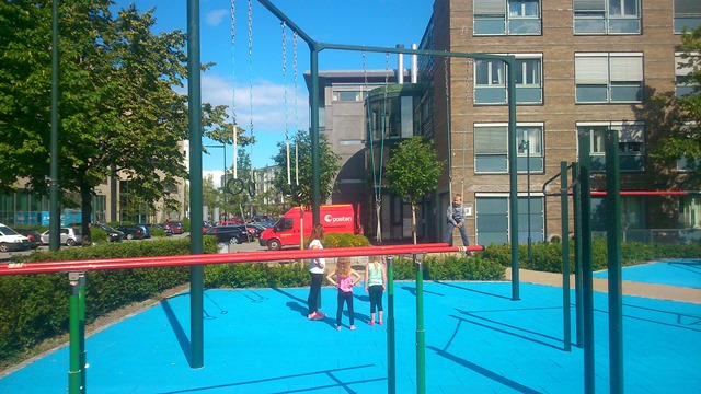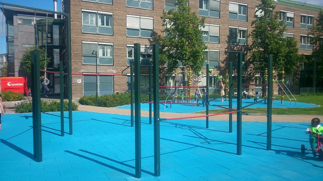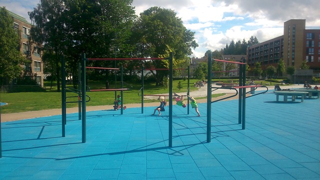 Täna käisin rattaga kesklinnas ja otsisin seal pargi üles, kus saab trenni teha. Päris head tingimused ghetto workouti harrastajatele. Kuigi minu arust olid talad liiga pehmed. Tegin 80 lõuatõmmet ja 100 dipsi. Rohkem sel nädalal ülakeha ei tee, sest isegi lõuatõmmetes andis rinna või-mis-iganes-koht tunda. Isegi ei suuda diagnoosida, mis ebameeldivust tekitab. Aga neljapäeval jälle teen jalgadele midagi. Ilusa ilma korral otsin õues tegevust.