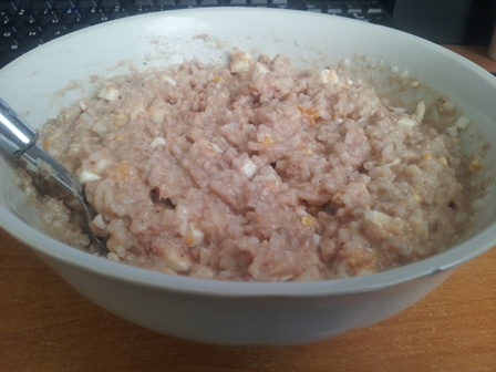 Vee kurnasin välja. Tuunikala värvi on kompott ja majonees on kollakas. Eriline tuunikalasõber ei ole, aga suutsin ära süüa terve portsjoni