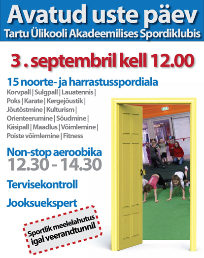 MemberLaupäeval, 3. septembril TÜ spordihoones Ujula 4 Avatud uste päev, siis võimalus ka jõusaaliga tutvuda: