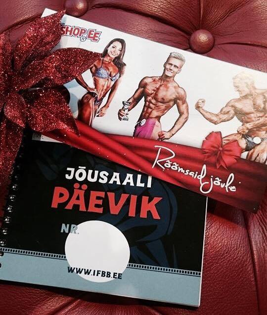 AUHINNAKS ON KAKS EESTI KULTURISMI JA FITNESSI LIIDU JÕUSAALI TREENINGPÄEVIKUT + MINU PÜHENDUSEGA JÕULUKAART!