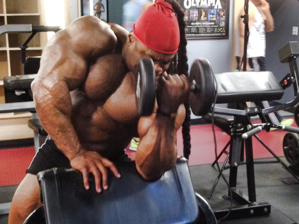 Kai Greene arm work out 11 weeks out // http://www.flexonline.com/videos/ifbb/ifbb-olympia-weekend-2013/kai-greene-arm-workout-11-weeks-2013-olympia