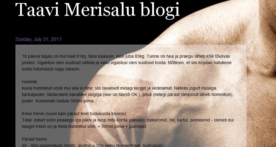 MemberKirjutasin blogisse tükikese oma toitumisest ja lisanditest, mida tarbin. Kellelgi veel mingeid küsimusi, küsige siin või saatke mailile: sarge@hot.ee