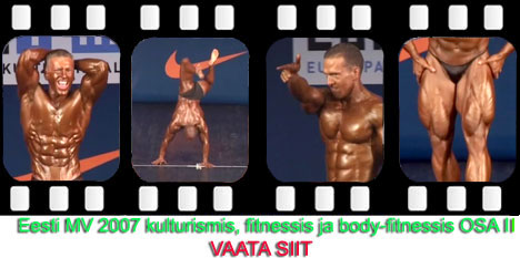 MemberLisaks Oti vidoteegile oleks mul pakkuda 1993 a. Eestikad. 1994 aasta karikas, 96a.karikas. 2001 aasta NABBA MM kus Kalmus oli 5s. Mõni WFF-i videolõik peaks ka kusagil olema. Samuti mõned TV saated kus Kalmus on targutanud või rahvale udu silma ajanud. Et kui on huvi siis võin kunagi ka need Tallinna toimetada.On ka mõned treeningud esimestest aastatest kus kohalike karudega koos trenni teeme. Tuntuim neist on Tarmo Noop, kes juba mõnda aega on õllejumal A.Le Coq-is. Samuti on vidoes esimeseks võistluseks valmistumise lõppfaas kus harjutan vabakava. Aasta oli siis 92 ja tehtud on see 2 nädalat enne eestimeistrivõistlusi kui olin veel juunior.