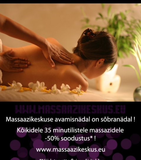 Pakume lõõgastavaid 35 min. massaaže avamisnädalatel sõpradele -50%. Ainult öelge registreerides sõna ,,sõber´´ või tooge kaasa flaier.