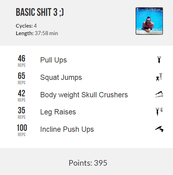 Kokku seega ainult 15 seeriat ja midagi rohkem väga teha ei osanudki. Üsna intensiivne trenn oli ja tõmbas hästi võhmale. Kestis ca. 50-55 minutit.