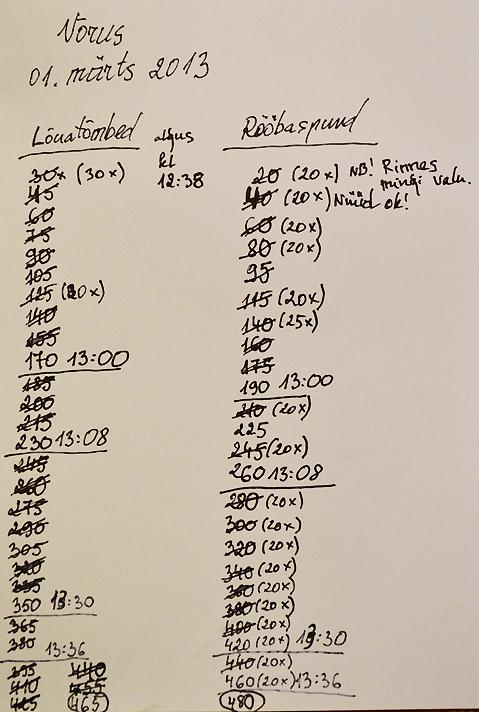 Jätkan kindlasti sama süsteemi järgi töötamist, aga ei näe hetkel erilist mõtet üle 500 korduse ühte liigutust pumbata. Ilmselt tulevikus lisan sellesse programmi ka bicepsi ja kätekõverdused, et ülakeha saaks ilusa vormi.