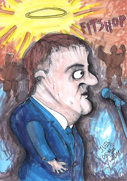 ModeratorNiisiis, vahelduseks mustale pesule ja muule jamale tegin Taavi Merisalust toreda pildi kuna mees ise soovis eelmisel nädalal, et ka teda kuulus kunstnik Vend Vähk kuidagi jäädvustaks. Et rahval igav ei oleks, siis kuulutan välja parima pildi kommentaari võistluse! Arvestades, et pildil on päris palju materjali ning viimastel päevadel on olnud ka päevakorral võistlusgrimmiga erinevad jamad, siis usun, et hakkab tulema päris edevaid kommentaare. Iseendast kavatsen ka lähipäevadel ühe pildi teha, et keegi ulguma ei hakkaks miks ma ainult teisi joonistan ning kes tahavad, siis võib anda endast märku, et ma ka teistest pilte teeksin. Kommenteerimisvõistluse paneme pidulikult lukku täna(9.mai 2011) õhtul kl 20:00 ja siis selgitame välja võitja. Võitjale kommentaatorile väga korralik auhind.