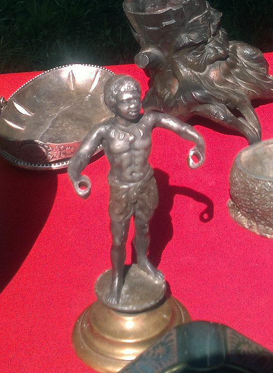 Muidugi, krõpsud ja mullijoogid on läinud erakordselt odavaks ning seda kühveldatakse tonnide kaupa sisse. Tüdrukutest on eriti kahju sest nemad ei tea, et sellise saasta söömise harjumus mingil hetkel maksab väga kurjasti kätte ning kui nad järsku pirnikujulised on, ei saa nad ka aru, miks järsku isased nende vastu huvi üles ei näita. Ilge. Lõpetuseks vahva pilt tänaselt Melliste vanakraami laadalt. Muu põneva kauba vahel hakkas silma väikese atleet-neegripoisi kujukene. Viskasin abikaasale nalja, et ostaks selle antiikkujukese ära ning järgmistel Lõuna-Eesti Lahtistel Karikavõistlustel annaks selle pidulikult üle absoluutsele võitjale!