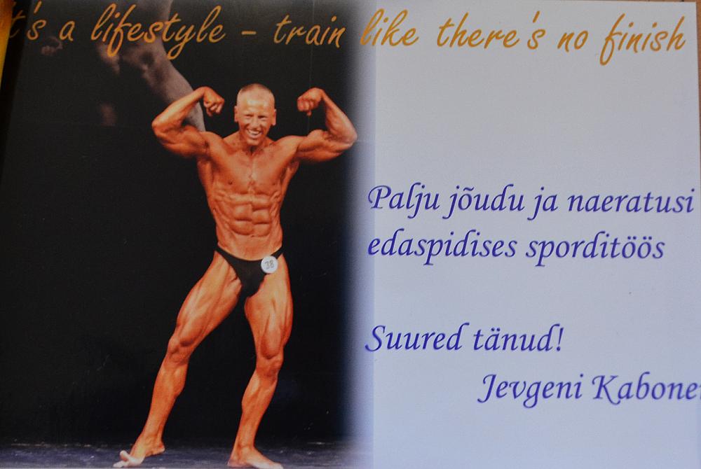 Lisaks väärib äramärkimist tõeline üllatuspomm meie Fitlife spordiklubi kulturismisõbralt Jevgenilt, kes võistles kevadel nii LELKV kui ka EKV-l. See mees kaalub kõigest 72 kg, aga on minu hinnangul Eesti ühe võimsama rinnaga mees! Härra tegi täna õhtul pärast trenni ja poseerimist sellise liigutava kingituse ja nagu ta ise ütles- igale ühele midagi. Meil ju peres küll maiasmokkasid, küll karvaseid ja sulelisi. Suured tänud, Jevgeni ning loodan sind ikka ja jälle võistlemas näha!