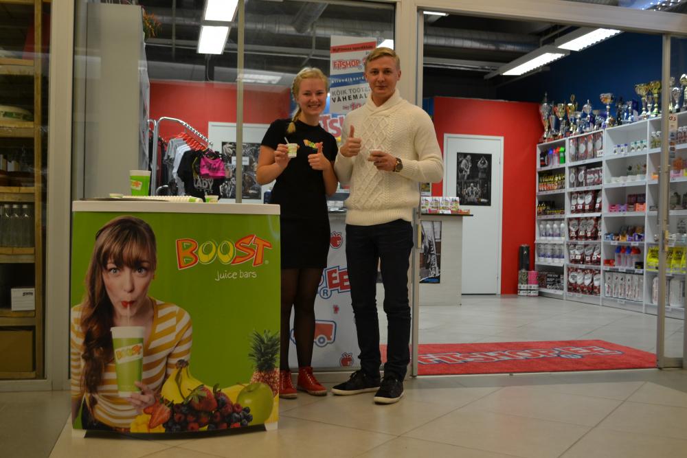 07.oktoober 2015 Täna tulid oma kaubaga välja BOOST noor meeskond, kes pakub Fitshop Kesklinna poe ees linnarahvale erinevaid smoothiesid. Olgu lisatud, et valguboostis on kasutatud meile armsaks saanud FAST proteiinilisandit HERA80! Degusteerimine kestab 17-19:00! Tulge proovima!
