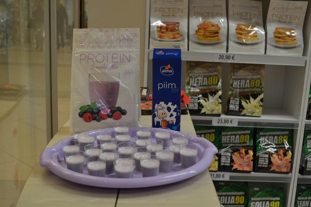 Fitshop Kesklinnas on täna lilla päev pühendatud Eesti vaieldamatult ühe tugevamale naisatleedile Esta Pildile! Esta ikka vahel üllatab mingisuguste värgide mänguga ja nüüd on tal siis see periood kus kõik on lilla. Lilla on ka meie degusteerimislaud- metsamarjamaitseline SMOOTHIE ja tundub, et sellest lillast on saanud inspiratsiooni teised linnakodanikud