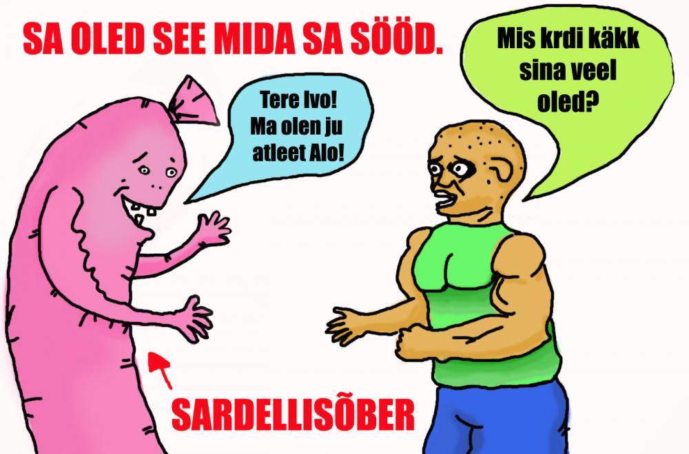 ModeratorNatuke huumorit ka igavavõitu esmaspäevaõhtusse. Enne väike eelinfo selle teose juurde. Täna käis järjekordselt ilmselgelt väsinud mees meie armsas Tartu kesklinna Fitshop poes ning kohati oli raske mõista, kas härra üldse teab, kes ta on ja kus ta on. Uhke mees ennast tutvustama ei hakanud aga väitis korduvalt, et hr Merisalu sõber. Selliseid Merisalu sõprasid on viimasel ajal päris mitmeid olnud, kes on uhke atleedi poolt niivõrd ära väsitatud et mehed ennast maalähedaste loodusravimitega oimetuks on joonud.