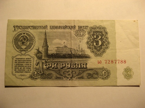 Sama palve, mis Otil- palun ärge laadige siia nii suuri pilte. Nendest paberrahadest mõlemad ammu olemas…selle 3-e rublasega veel 15-aastaselt poes käidud. Rahareform oli 1992 aastal ja enne eesti krooni olid just sellised vene rublad kasutusel üle terve NSVL-u! Kusjuures kolmekas oli siis ikka kõvem sõna kui praegune 3 krooni ja oma hiigelaegadel 80-datel oli 3 rutsi kindlasti kõvem sõna kui 3 euri, sest kinopilet maksis 20 kopikat jne.
