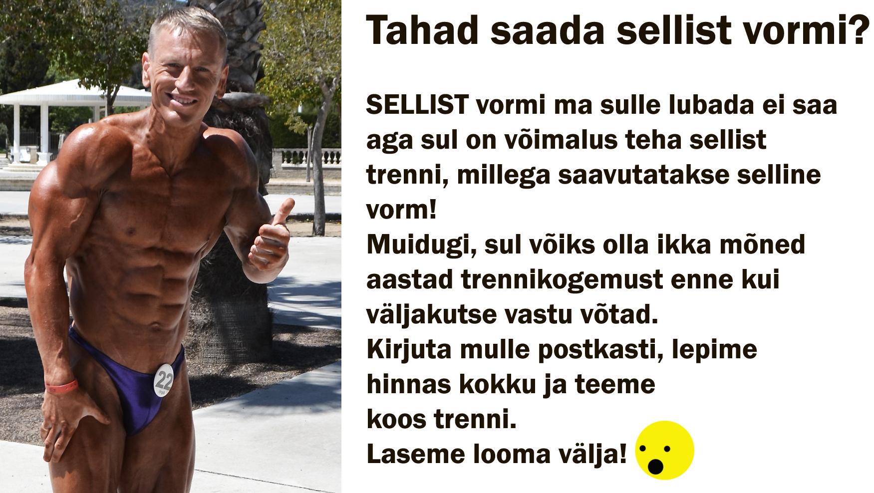 Tere sõbrad! Panin just tõeliselt vanad retropommid oma facebooki lehel üles, aga panen need ka siia ning kirjutan pikemalt oma mõtetest ja tegemistest sellel kaugel ajal 20 aastat tagasi. Muide, millega teie sellel ajal tegelesite? Sissejuhatuseks märgin ära, et esimest korda elus astusin jõusaali uksest sisse 1992 aasta septembris. Enne seda olin teinud mõned aastad karated ning 90-date alguses oli noorele mehele sport olulisem kui tänapäeva lõdvikutele nutitelefon. Mul oli keskkooli astudes kindel soov spordiga jätkata ning silmapiiril olid poks ning maadlus, et kantpeadele vastu seista või siis ise kantpeaks hakata. Juhuse tahtel oli minu Kunstikooli kursusel tänaseks päevaks paksuks kolliks muutunud Taavi Unt, kes nüüd inimestele vabatahtlikult ja sunniviisiliselt tattoosid peale lööb. See mees kutsuski mind jõusaali ning kuna EPMÜ spordihoone asus meie koolimaja kõrval, otsustasin natukene ka jõusaalis kätt proovida. Esimene eesmärk oli natukene liha luudele koguda ja siis vaatab edasi. Emakene Loodus arvas teisiti- kiire areng ei jätnud enam palju valikuvõimalusi. Jõusaalist sai minu teine kodu! Sellel ajal oli saalis päris tugev Team koos. Keegi midagi kulturismist ei teadnud ning AC/DC muusika pandi teinekord nii kõvasti mängima, et mul hakkas ninast verd jooksma. Mehed teinekord katkestasid trenni ja tantsisid tobedaid tantsusid, teinekord sai mõnda laulu kaasa lauldud. Trenni tehti looma moodi ja lolluseid veel rohkem. Ok, nii see aeg vaikselt edasi liikus. Nädalatest said kuud ja kuudest aastad. Juba 1994 aastal käisin vaatamas elu esimest kulturismivõistlust ning see, mis ma nägin, motiveeris veel rohkem pingutama. Tänapäevases mõistes veeresid lavale ju suured vesipallid, nende seas mõni üksik teravam poiss, aga nii või teisiti see kõik motiveeris. Kuuldused minu arengust olid vahepeal liikunud ka teistesse linnadesse ja klubidesse. Lisaks jõusaalile hakkasin võistlema ka jõutõstmises. Läks veel pikalt aega, kui suure survestamise tulemusena otsustasin esimest korda ka ise kulturismilavale minne alles 1997 aasta kevadel. Panengi siia nüüd üles mõned pildid EKV 1997 eelnenud perioodist ning ka mõned järgneva perioodi pildid: