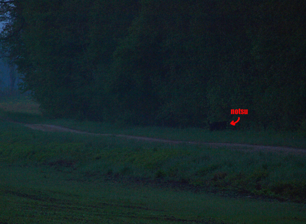 20.mai varahommikul.Kohtumine metseakuldiga enne Võrtsjärveni jõudmist. Mingi hetk oli elukas minu autole päris lähedal ja kartsin, et ründab minu uhket autot. Need on suhteliselt nõrgamõistuslikud elukad ning on olnud juhuseid, kus kuldid mõlgivad masinaid. Õnneks see poiss keeras otsa ümber ja jooksis metsa. Sain veel ühe pildi kiirelt teha, aga liiga hämar oli kl 03:45 hommikul…