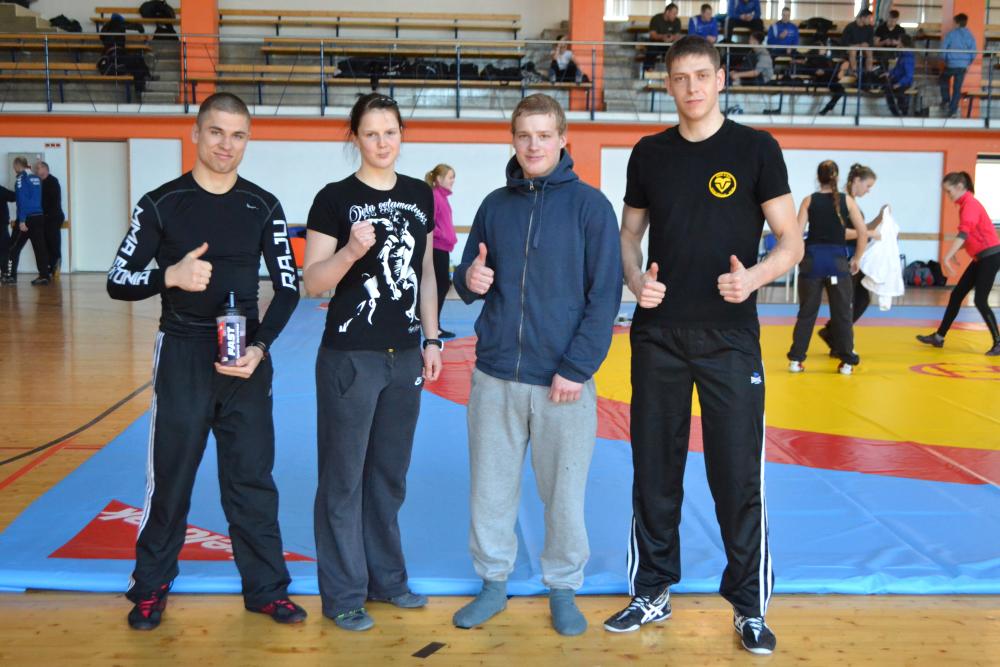 Mis sel lähenemisel üldse häda on? Eelmisel baaskursusel õpetasime Alariga neid vist liiga hästi (ajan siinkohal rinna demonstratiivselt kummi) ning kui kursuse lõpupoole hakkasin sparre kaasa tegema, siis oli maadlussparr oodatust raskem. (Muideks – Alari postituses oleval pildil on kuldmedalist Kaupo tollelt baaskursuselt pärit.) Üks põhjus, miks sparringud lähevad baaskursuslastega järjest raskemaks, on kindlasti detailide olulisus – kui korrigeerin õpilase kehaasendit või kaitseliigutust poole sentimeetri ja grammi võrra, siis tean juba ette, et järgmise sparringu ala on teda raskem maha väänata. Ühest küljest hea – õpilased õpivad, mina ilmselgelt tean, mida ma räägin jne. Teisest küljest on see halb – mul on nõrk ego ning mismõttes minu õpilane hakkab mind maha väänama???