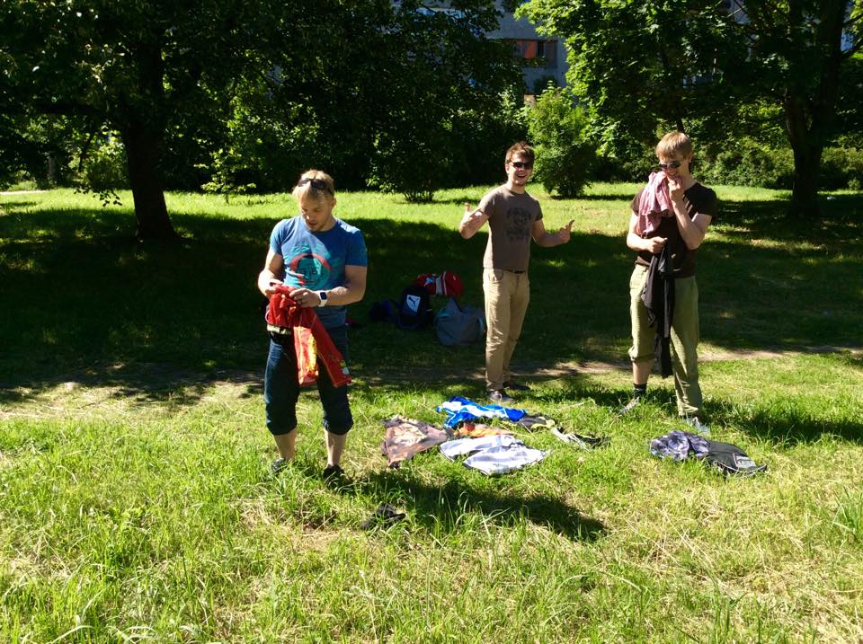 Pärast trenni läksime sööma. Jevgenis soovitas meile lähedal asuvat bistroo stiilis söögikohta. Riias toidujagamisega kokku ei hoitud ja põrkasime sealt rõõmsalt minema. Pärast läksime jäätist sööma ja siis riideid kuivatama. Esimesena proovisime auto peal.